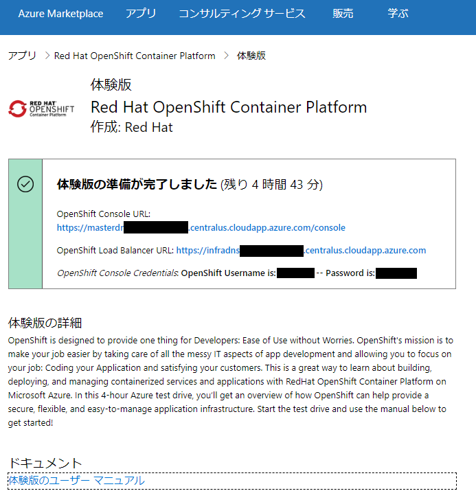 取り敢えず、Test Drive OpenShift (on Azure)から入ることにした。
