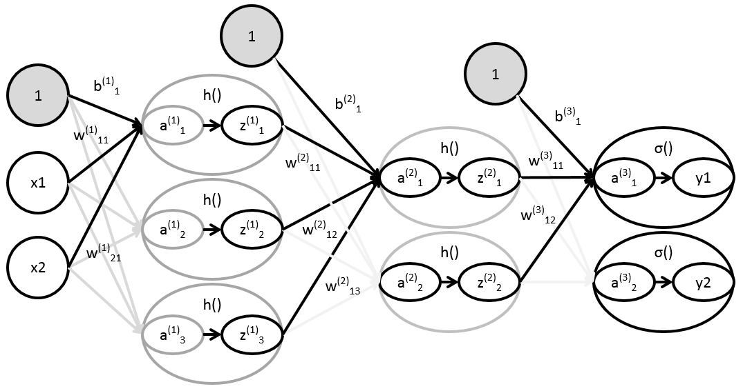 前述の「簡単なニューラルネットワーク」を3層化する。