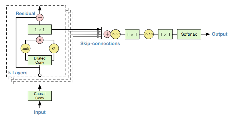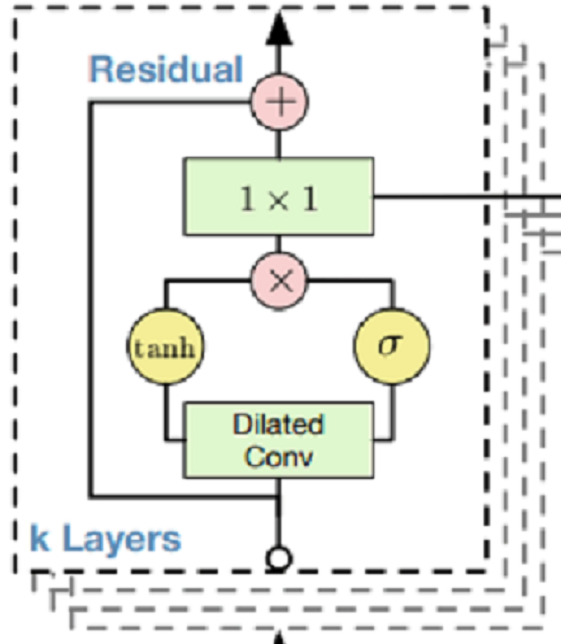 - Dilated Causal Convolution + Gated Activation Unit から構成される。