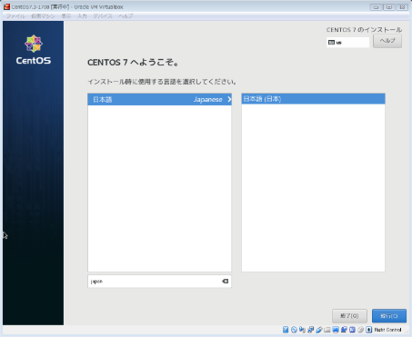 日本語」を選択し、[続行]ボタンを押下。
