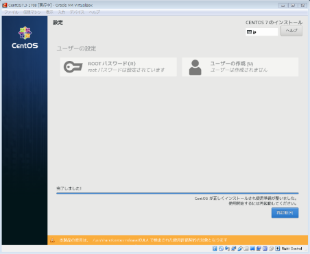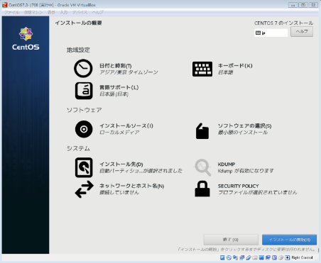 この状態でVirtualBox?マネージャーでスナップショット(初期設定直後)を取得。