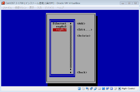 「enp0s8」を選択し、Enterキーを押下。