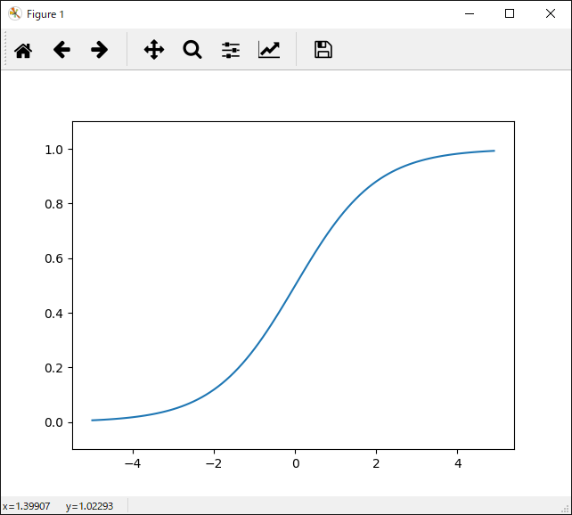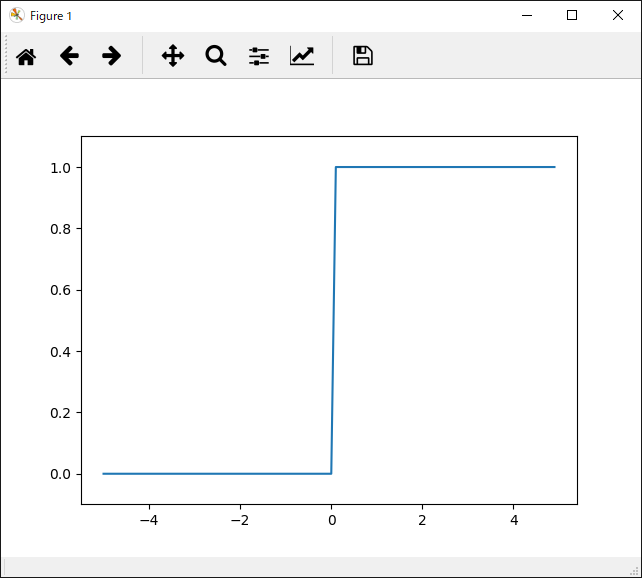 -5.0 ~ 5.0までの0.1刻みのプロットをステップ関数にかけてグラフ化する。