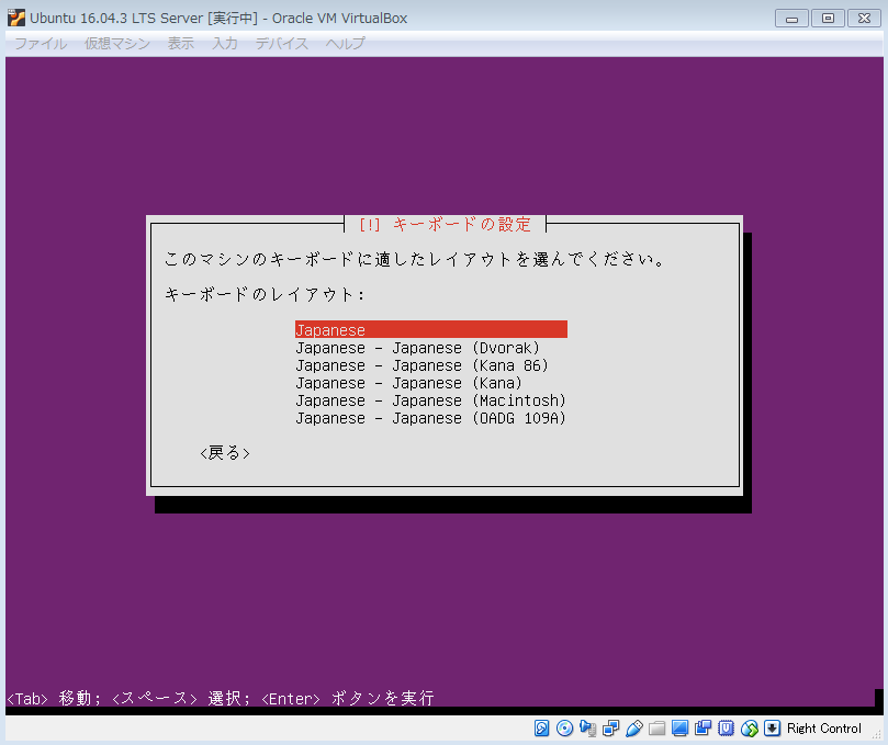 「Ubentu Serverをインストール」を選択しEnterキーを押下。