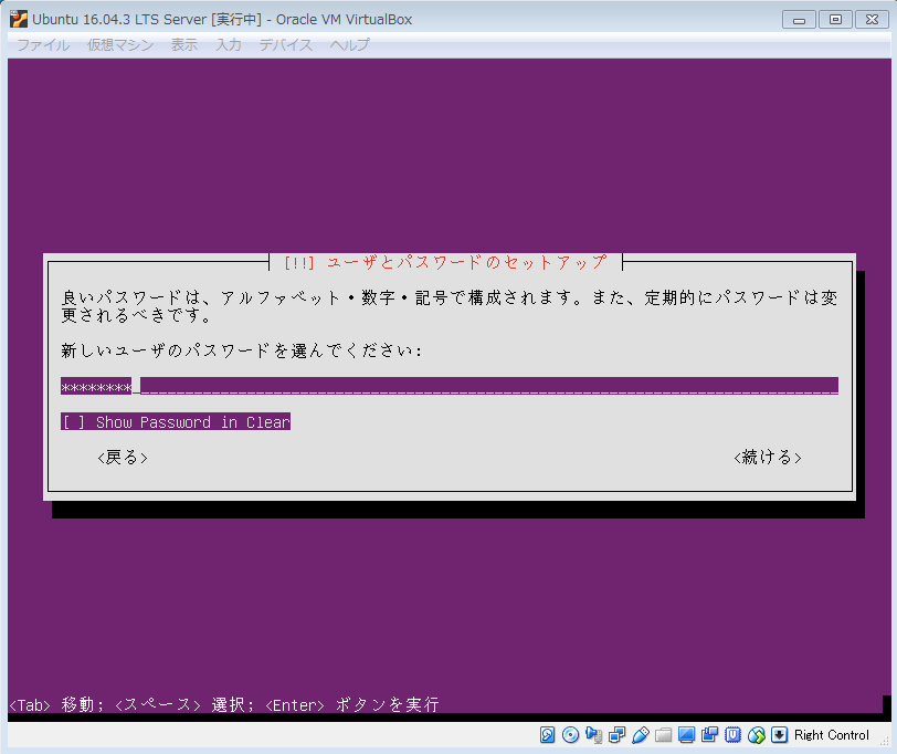 パスワードを再入力後「続ける」を選択しEnterキーを押下。