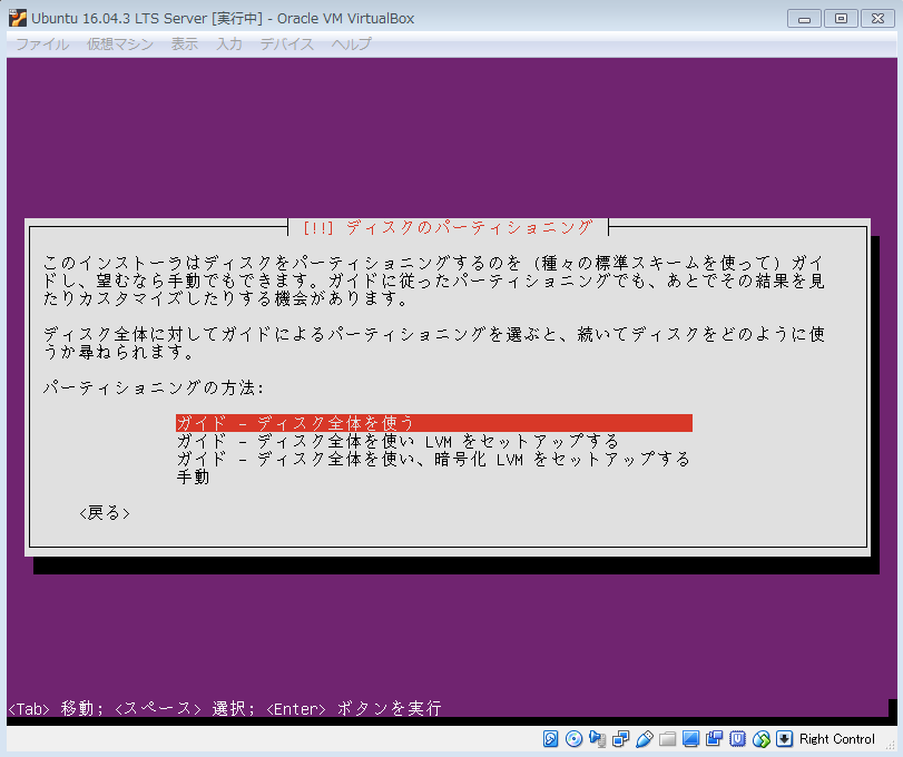 「ガイド - ディスク全体を使う」を選択しEnterキーを押下。