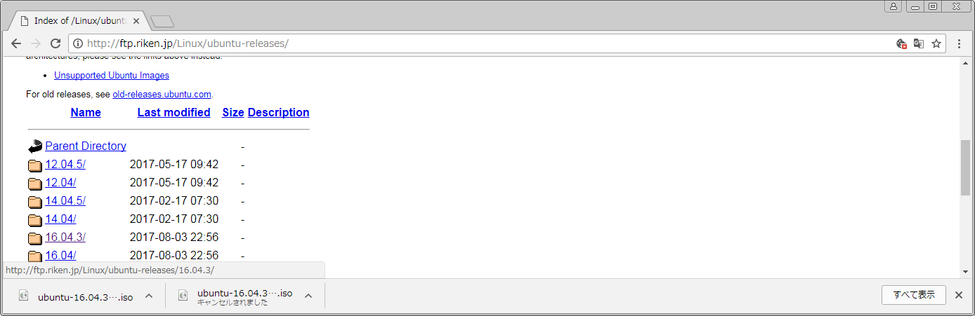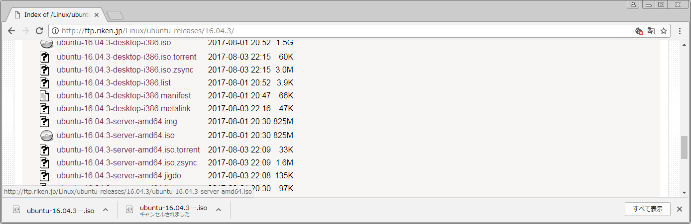 ubuntu-16.04.3-server-amd64.isoをクリック。