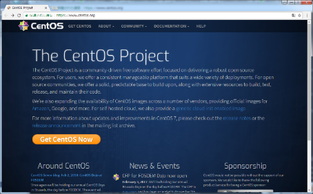 https://www.centos.org を開き、[Get CentOS Now]をクリック。