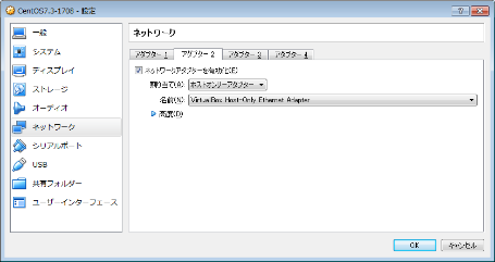 2. 割り当てに「ホストオンリーアダプタ」を選択し、