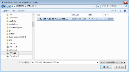 4」で保存したISOファイルを選択し、「開く」をクリック。