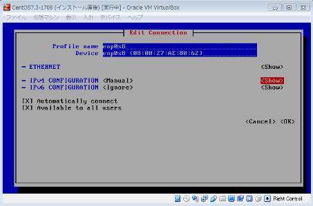 IPv4 CONFIGRATIONの「Show」を選択し、Enterキーを押下。