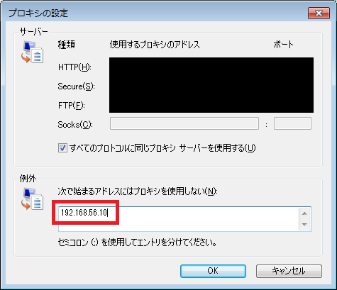 し、ゲストOSとのHTTP通信からプロキシを除外する。