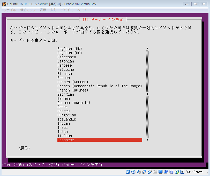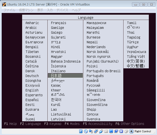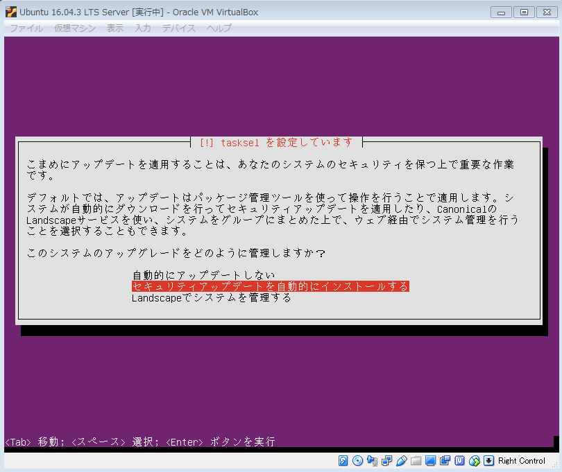 「Ubentu Serverをインストール」を選択しEnterキーを押下。