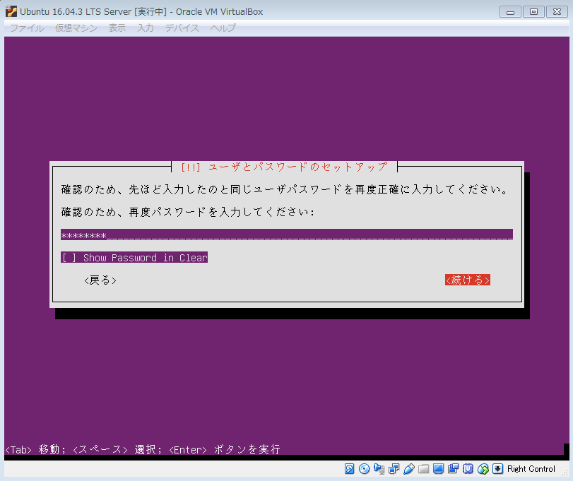 パスワードを再入力後「続ける」を選択しEnterキーを押下。